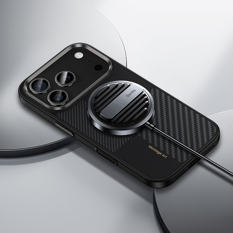 iPhone 17 Pro Kılıf M-safe Şarj Özellikli Karbon Fiber Benks Montage Hybrid ArmorPro Kevlar Kapak