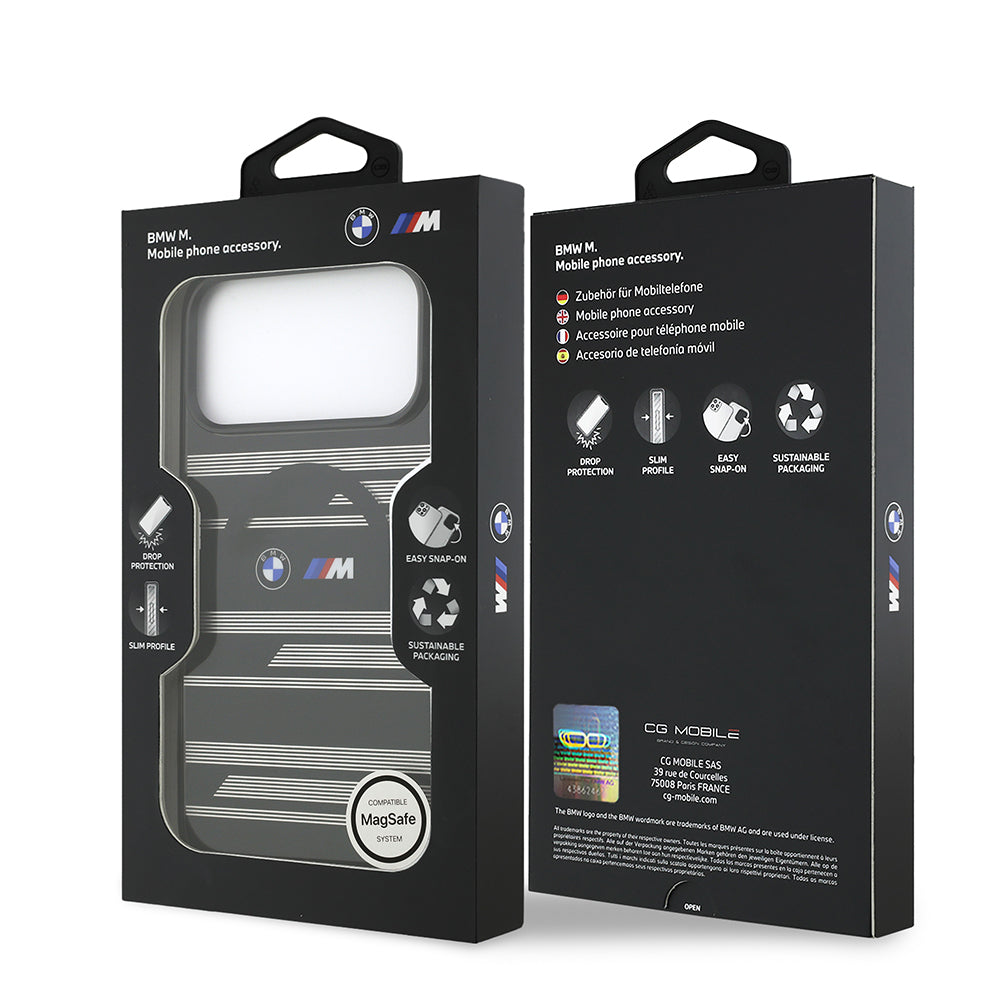 iPhone 17 Pro Max Kılıf BMW Orjinal Lisanslı M-safe Şarj Özellikli Metal Kamera Butonlu Yatay Şeritli M Dizayn Kapak