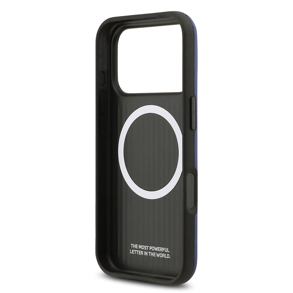 Apple iPhone 17 Pro Max Kılıf BMW Orjinal Lisanslı M-safe Şarj Özellikli Metal Logolu Delikli M Dizayn Deri Kapak Lacivert