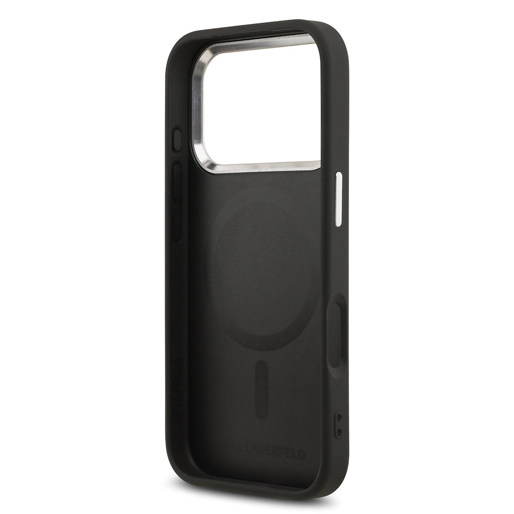 Apple iPhone 17 Pro Max Kılıf Karl Lagerfeld Orjinal Lisanslı M-safe Şarj Özellikli Metal Kamera ve Buton Tasarımlı Karl PU Deri Kapak Siyah