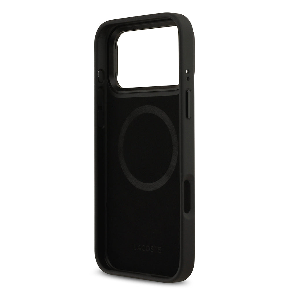 iPhone 17 Pro Max Kılıf Lacoste Orjinal Lisanslı M-safe Şarj Özellikli Standlı PU Deri Karışık Monogram Desenli Kapak