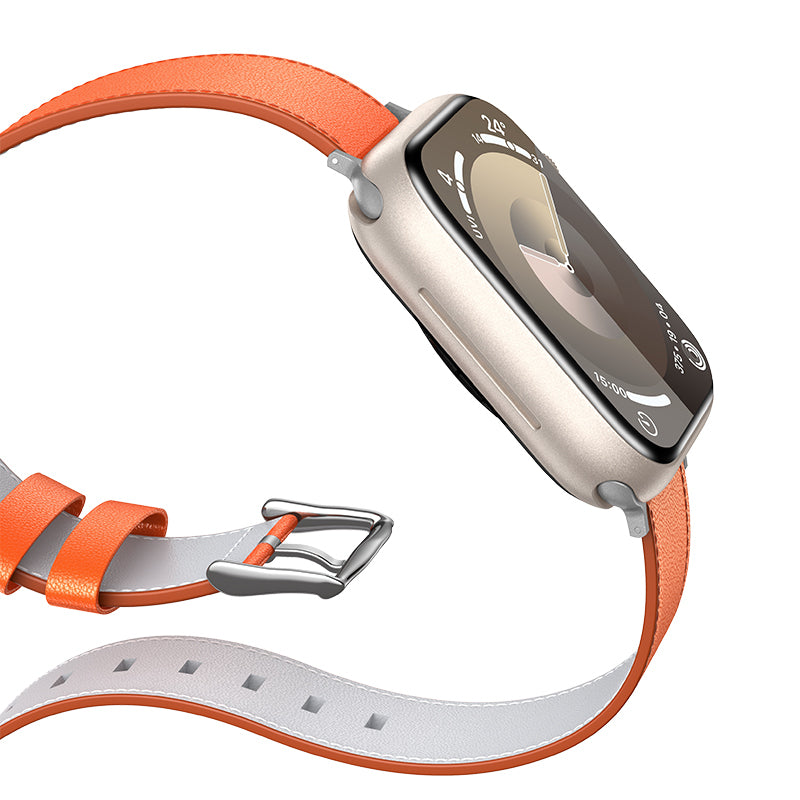 Apple Watch 10 42mm Benks Vintage Genuine Leather Serisi Deri Kordon Strap Kayış Turuncu