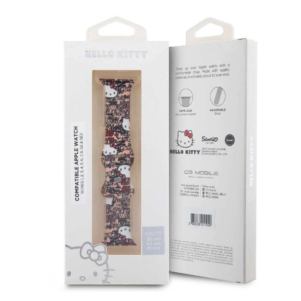 Apple Watch 38mm Hello Kitty Orjinal Lisanslı Etiket Graffiti Silikon Kordon Pembe