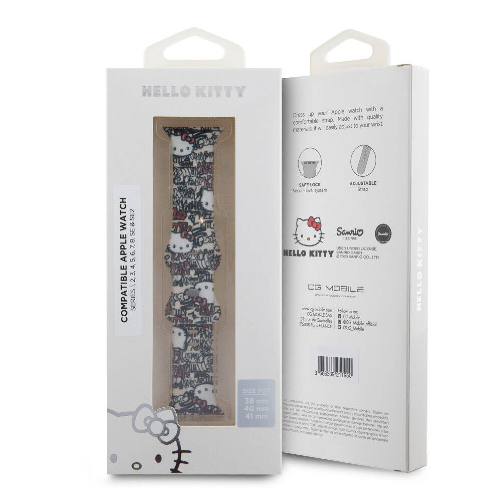 Apple Watch 41mm Hello Kitty Orjinal Lisanslı Etiket Graffiti Silikon Kordon