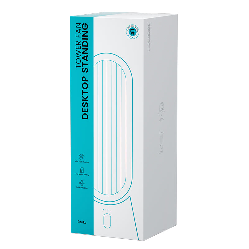 Benks Ace Tower Fan, 10W anma kapasitesi ve 4000 mAh batarya ömrü gibi etkileyici teknik özelliklere sahiptir. 268*101*101mm boyutlarıyla kompakt bir tasarıma sahip olan ürün, kullanıcılar için kolay taşınabilirlik sağlar. 5V / 2A şarj voltajı ve Type-C şarj giriş portu sayesinde hızlı ve pratik bir şekilde şarj edilebilir. 580 gram ağırlığıyla da kullanıcıya taşıma kolaylığı sunar.