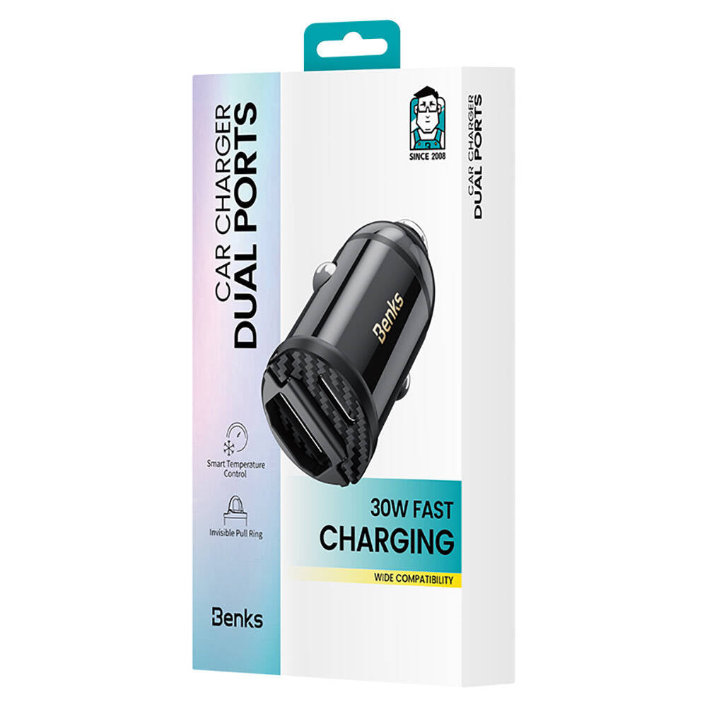 Benks C30SE Hızlı Şarj Çift Port PD Araç Şarj Aleti 30W Max Siyah