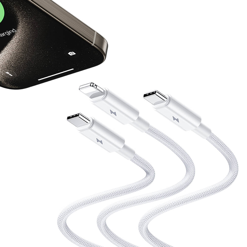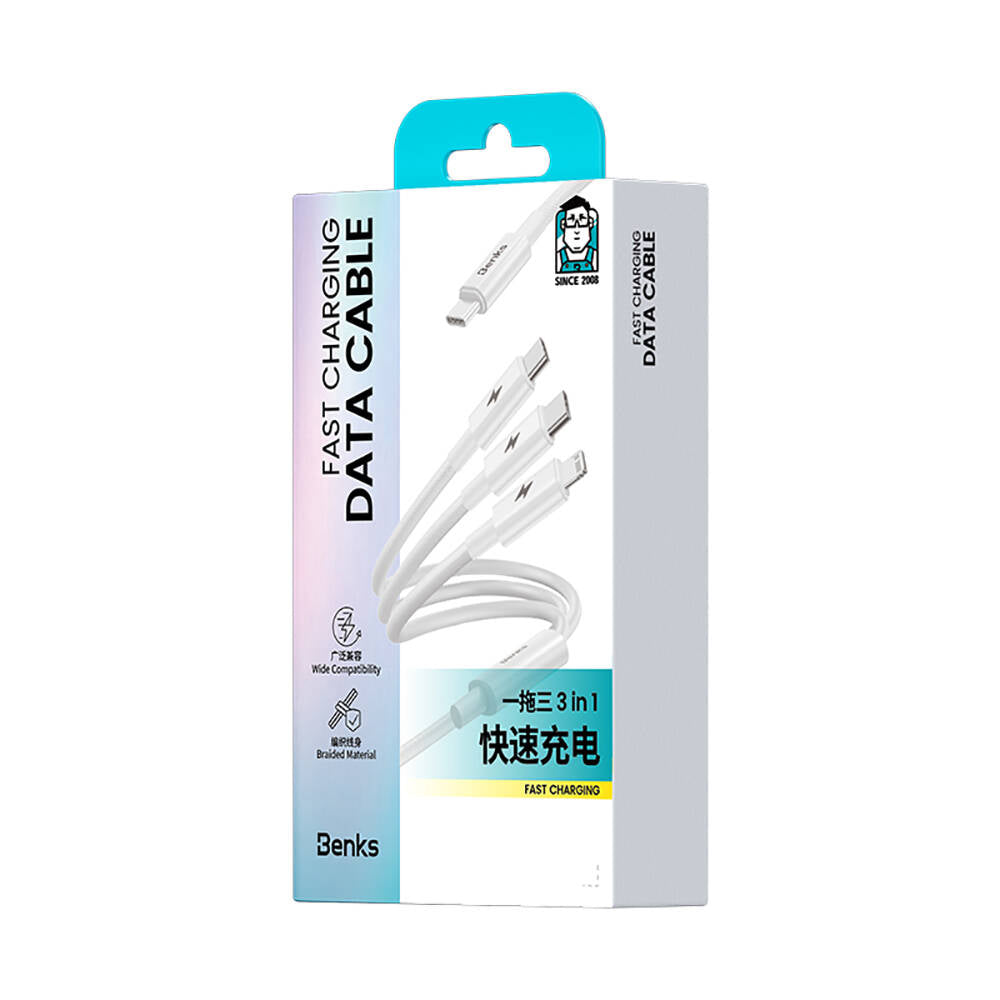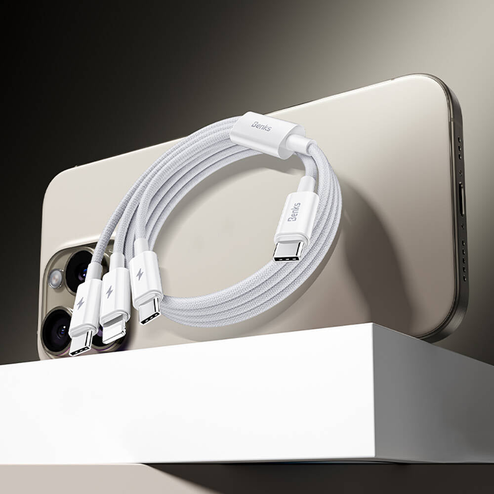 Benks D46 Type-C to Type-C & Type-C & Lightning PD3.0 Örgülü Şarj ve Data Kablosu 100W 1.2 Metre Beyaz