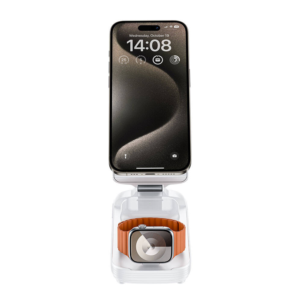 Benks MP13 5in1 Dijital LED Göstergeli Katlanabilir Kablosuz Şarj Standlı Powerbank 15W 10000mAh Beyaz