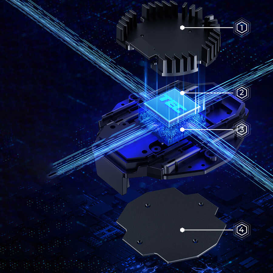 TEC soğutma çipi ve iletken alüminyum iletken altıgen levha ile soğutma sağlar.