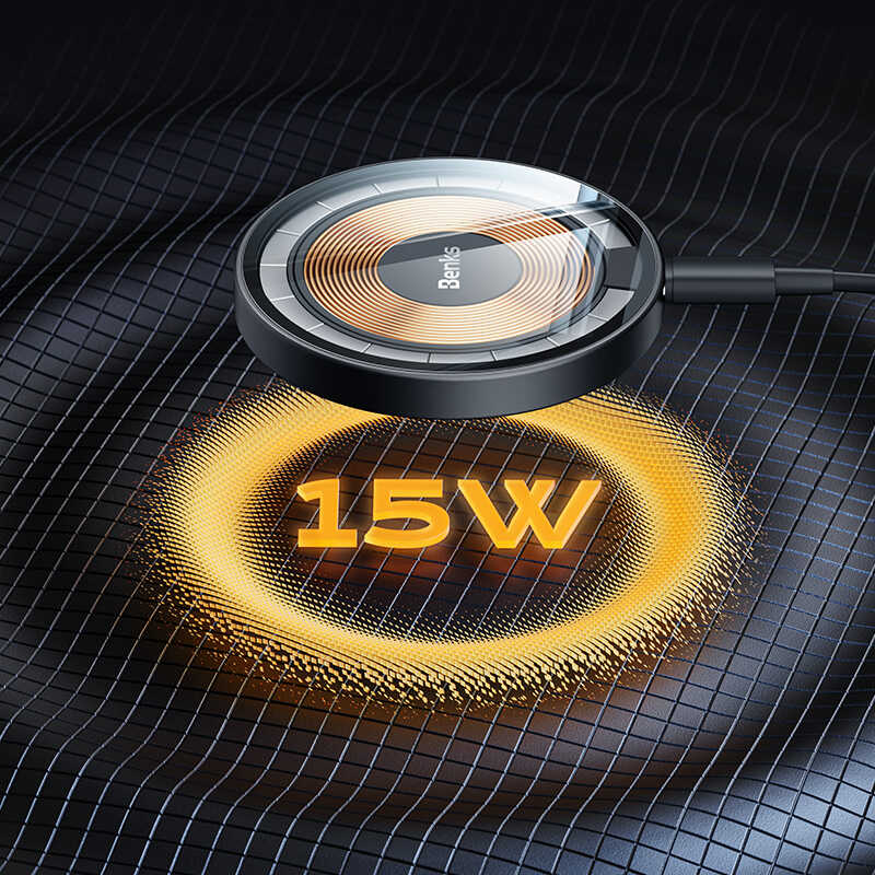 Benks W09 Şeffaf Görünümlü M-safe Wireless Şarj Aleti Siyah