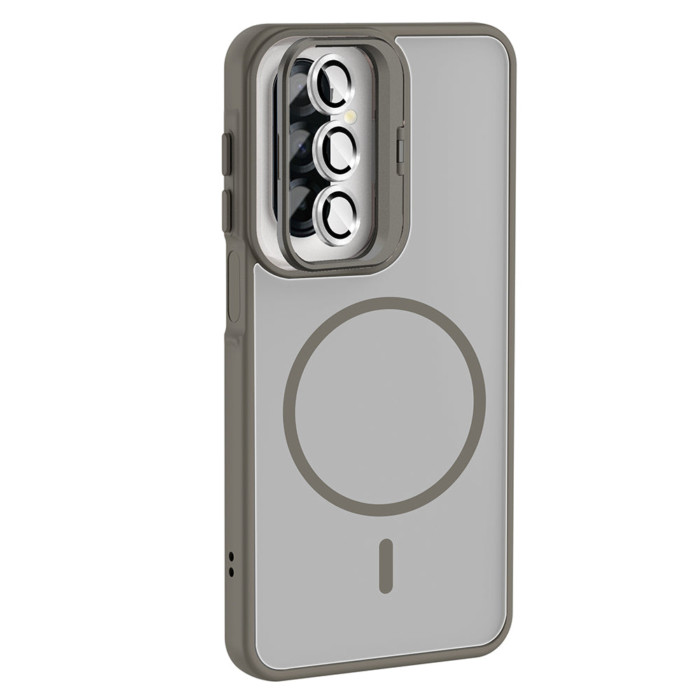 Galaxy A17 Kılıf Standlı ve Kamera Lens Hediyeli Zore Etro Kapak Gri