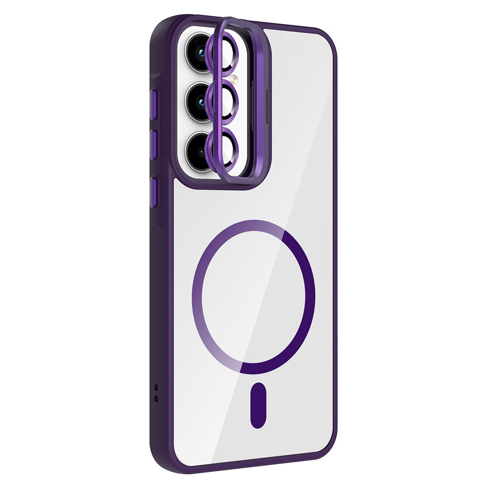 Galaxy A55 Kılıf Standlı ve Kamera Lens Hediyeli M-Safe Şarj Özellikli Zore Etro Kapak Derin Mor
