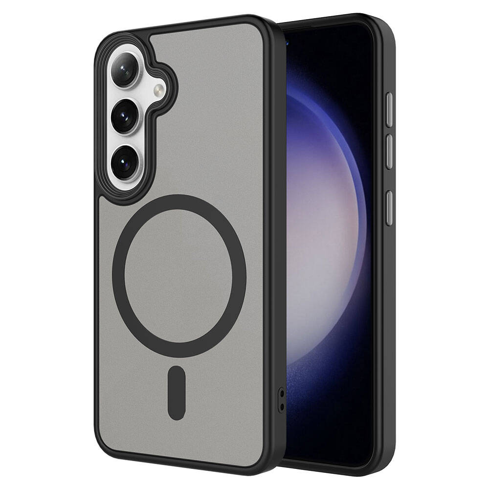Galaxy S24 Kılıf Sert PC Arka Yüzey Wireless Şarj Özellikli Zore Flet M-safe Kapak Lacivert