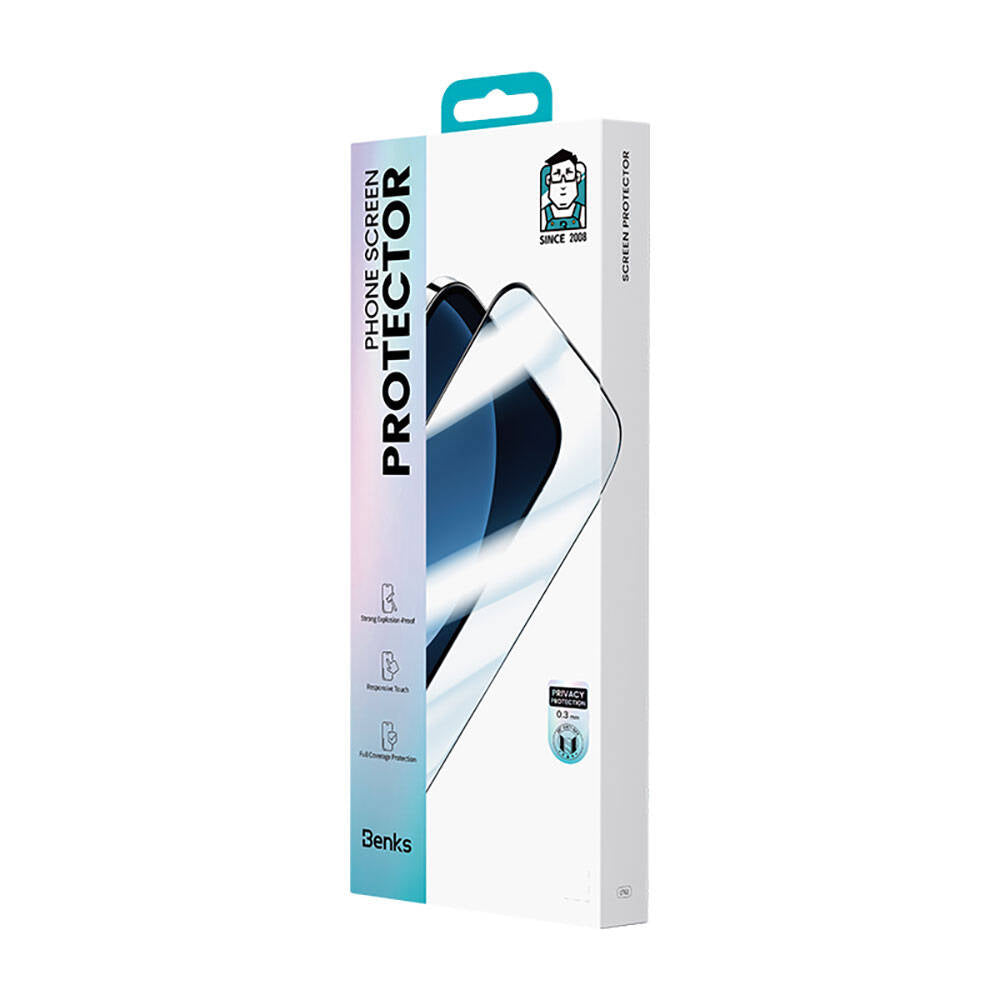Benks Ultra Shield 0.3mm Privacy Ekran Koruyucu, modern teknoloji ve gizlilikihtiyaçlarınızı bir araya getirerek telefonunuz için eksiksiz bir koruma sunar.Yüksek kaliteli güçlendirilmiş camı sayesinde, sert darbelere karşı sağlam birsavunma hattı oluştururken, pürüzsüz ve hassas yüzeyi dokunuşlarınıza mükemmelbir şekilde yanıt verir.