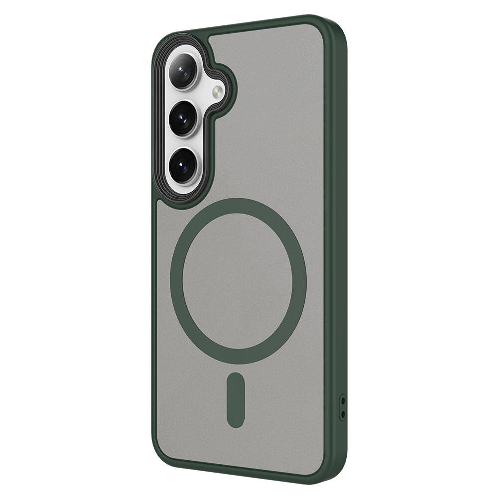 Galaxy S24 Plus Kılıf Sert PC Arka Yüzey Wireless Şarj Özellikli Zore Flet M-safe Kapak Koyu Yeşil