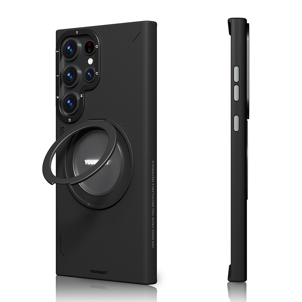 Galaxy S24 Ultra Kılıf Magsafe Şarj Özellikli 360° Standlı Basit Mat Deri Desenli Youngkit Tech Leather Serisi Kapak