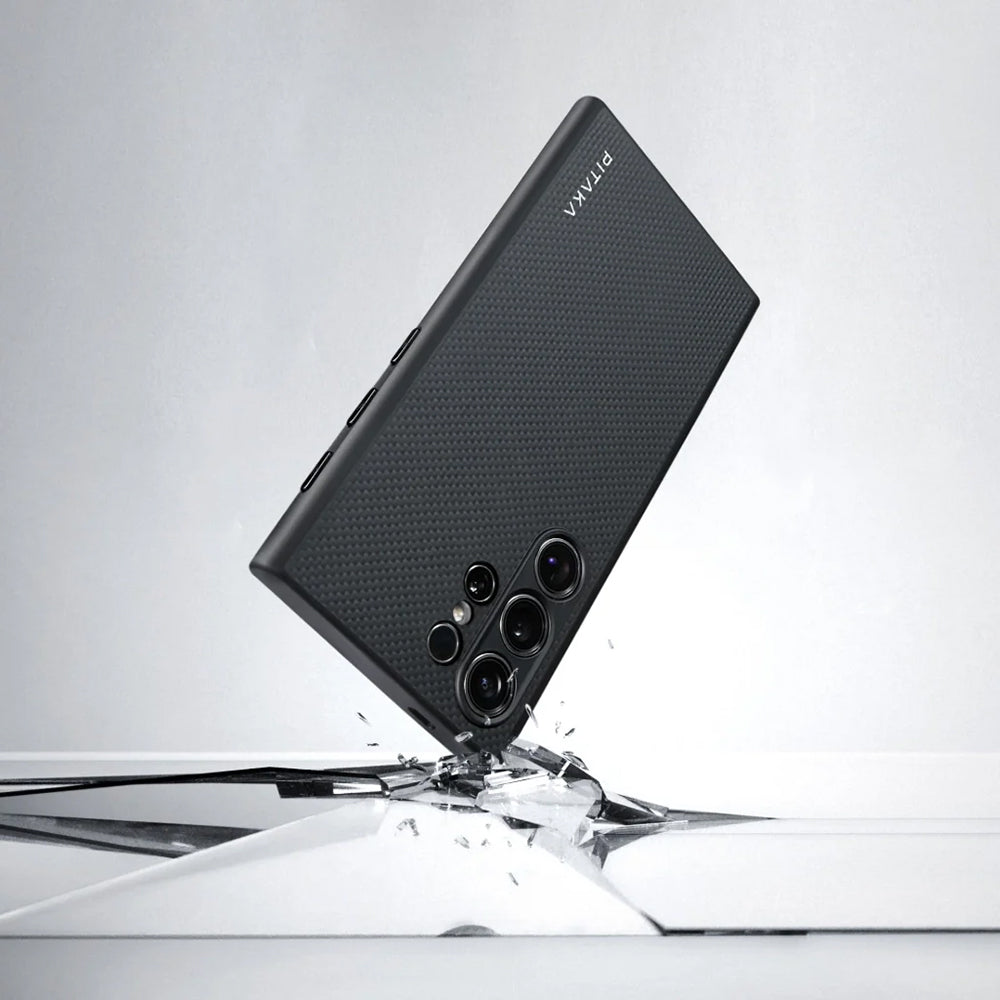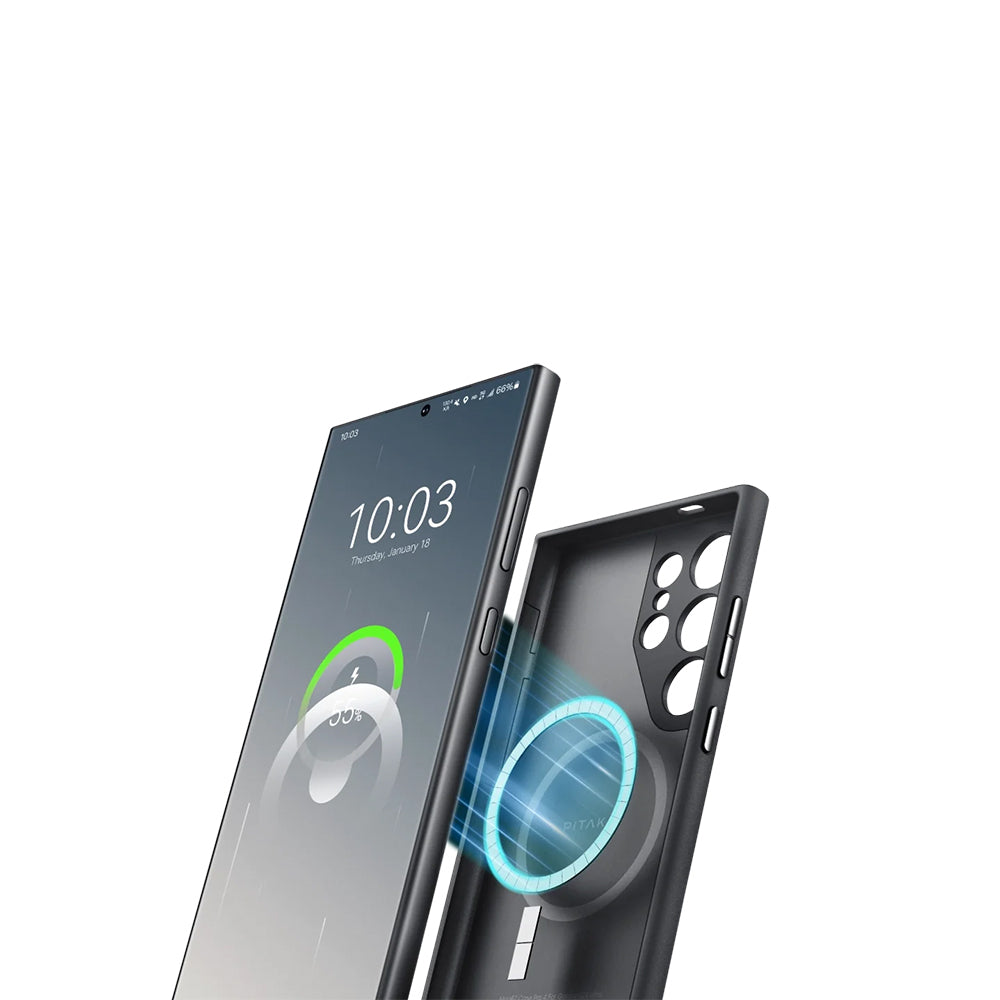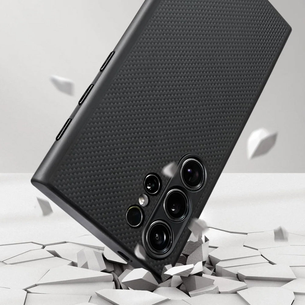 Galaxy S24 Ultra Kılıf Magsafe Şarj Özellikli Aramid Fiber 3 Fonksiyon Butonlu Pitaka PinButton Serisi Kapak