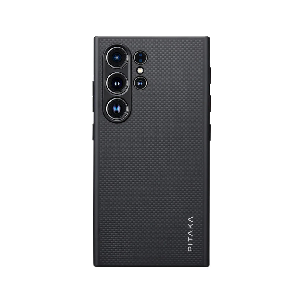 Galaxy S24 Ultra Kılıf M-safe Şarj Özellikli Aramid Fiber 3 Fonksiyon Butonlu Pitaka PinButton Serisi Kapak Siyah-Gri