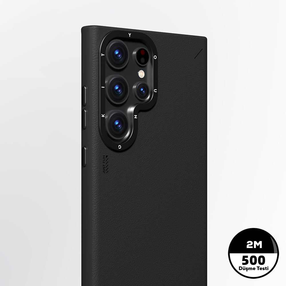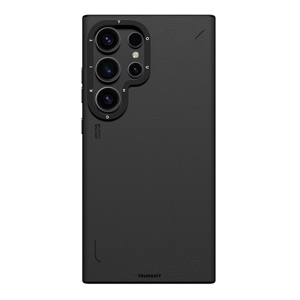 Galaxy S24 Ultra Kılıf M-safe Şarj Özellikli Basit Mat Deri Desenli Youngkit Tech Fashion Serisi Kapak Siyah