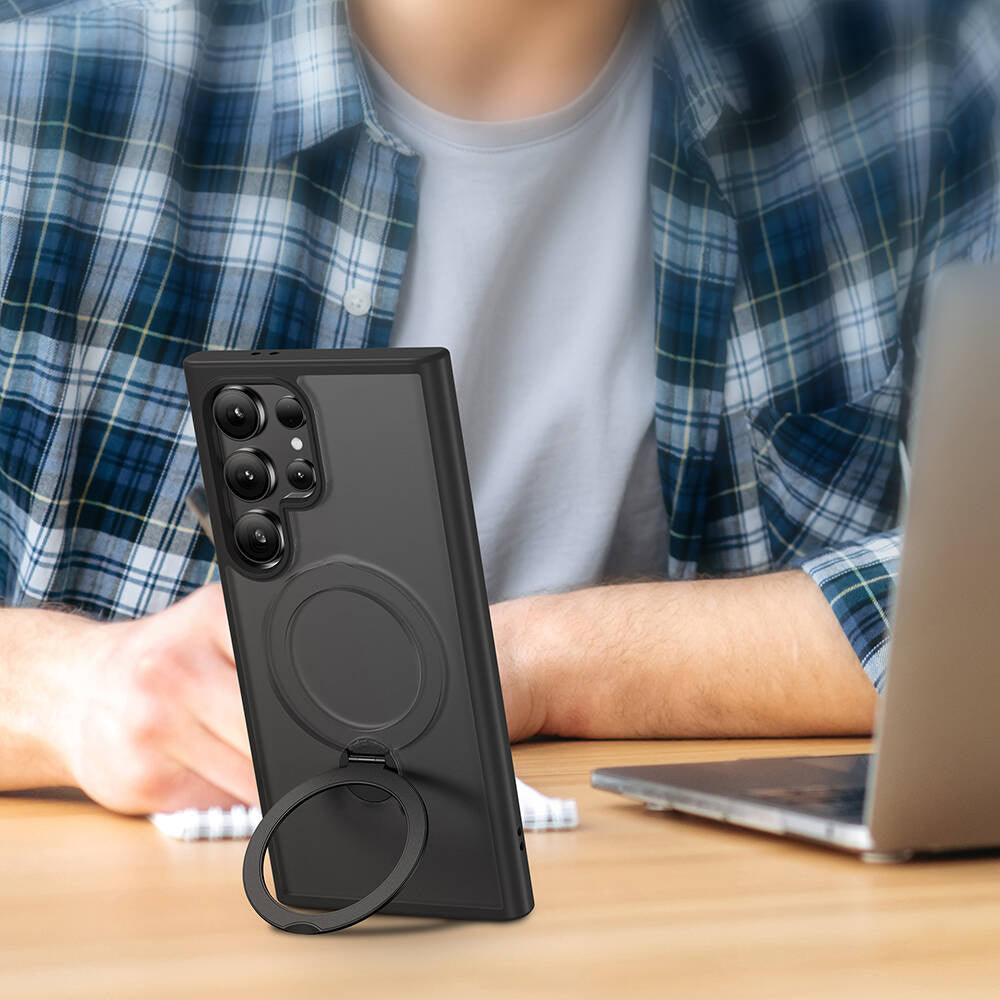 Galaxy S24 Ultra Kılıf M-safe Şarj Özellikli Benks Standlı Mist Protective Kapak Siyah