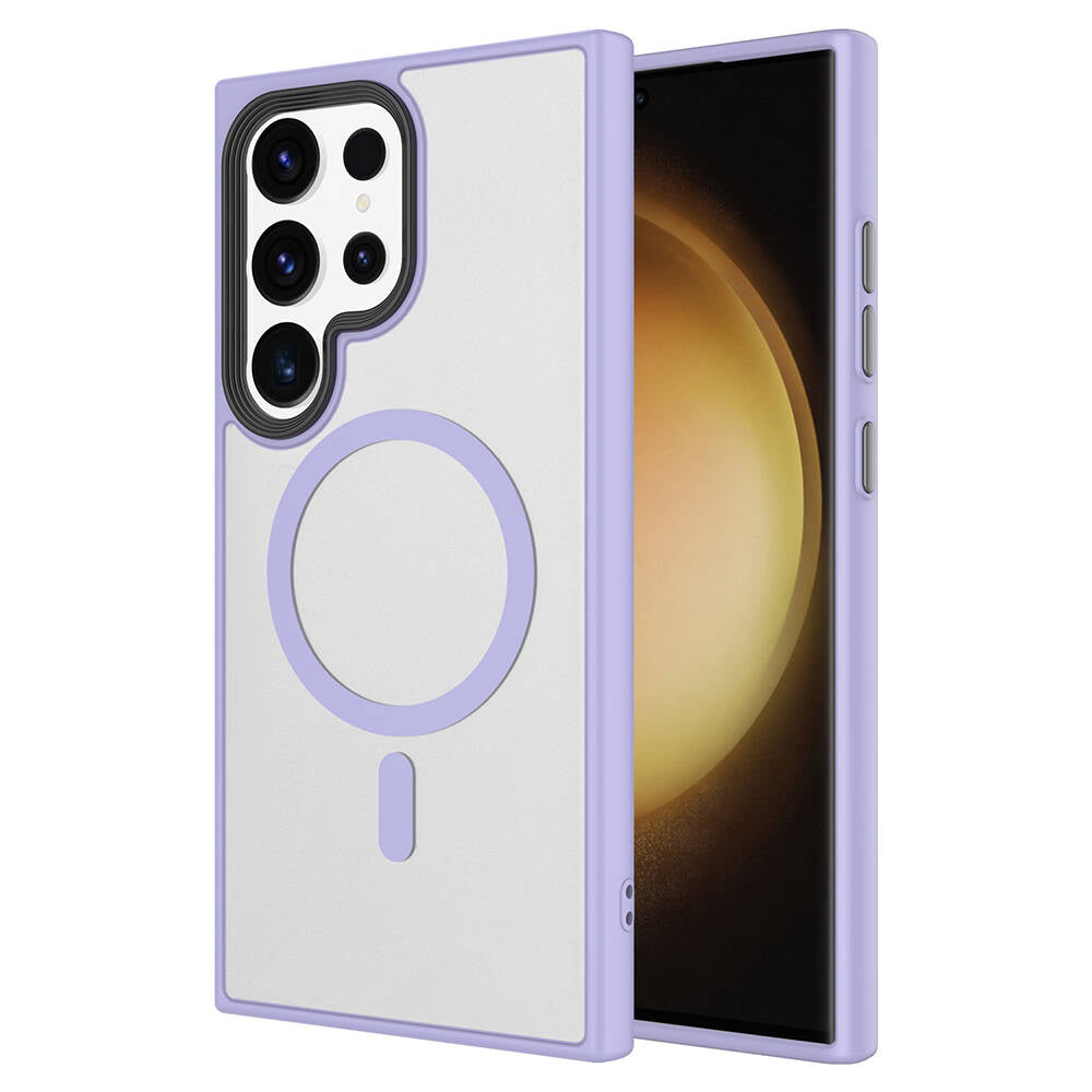 Galaxy S24 Ultra Kılıf Sert PC Arka Yüzey Wireless Şarj Özellikli Zore Flet M-safe Kapak Lila