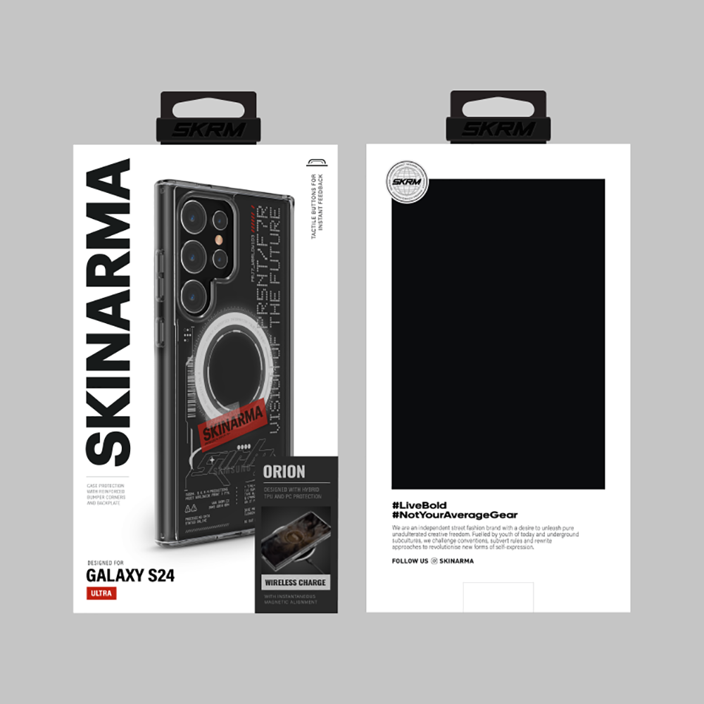 Galaxy S24 Ultra Kılıf SkinArma Magsafe Şarj Özellikli Yazı Desenli Airbag Tasarımlı Orion Kapak