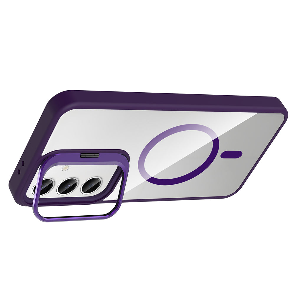 Galaxy S25 FE Kılıf Standlı ve Kamera Lens Hediyeli M-Safe Şarj Özellikli Zore Etro Kapak