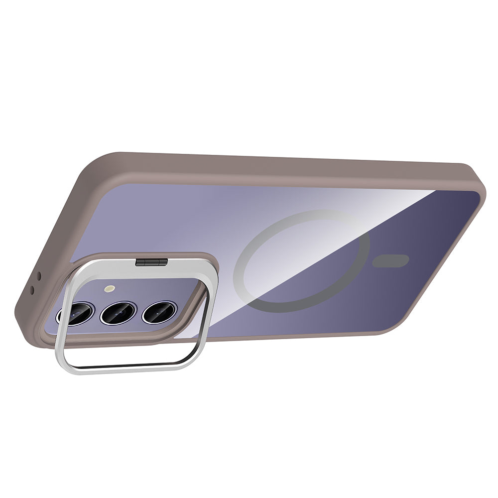 Galaxy S25 Plus Kılıf Standlı ve Kamera Lens Hediyeli M-Safe Şarj Özellikli Zore Etro Kapak Desert Titanyum