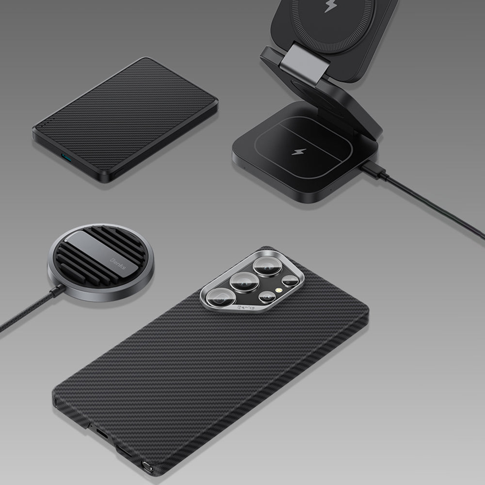 Galaxy S25 Ultra Kılıf Benks M-safe Şarj Özellikli Magnetik ArmorAir 600D Kevlar Fiber Kapak Siyah