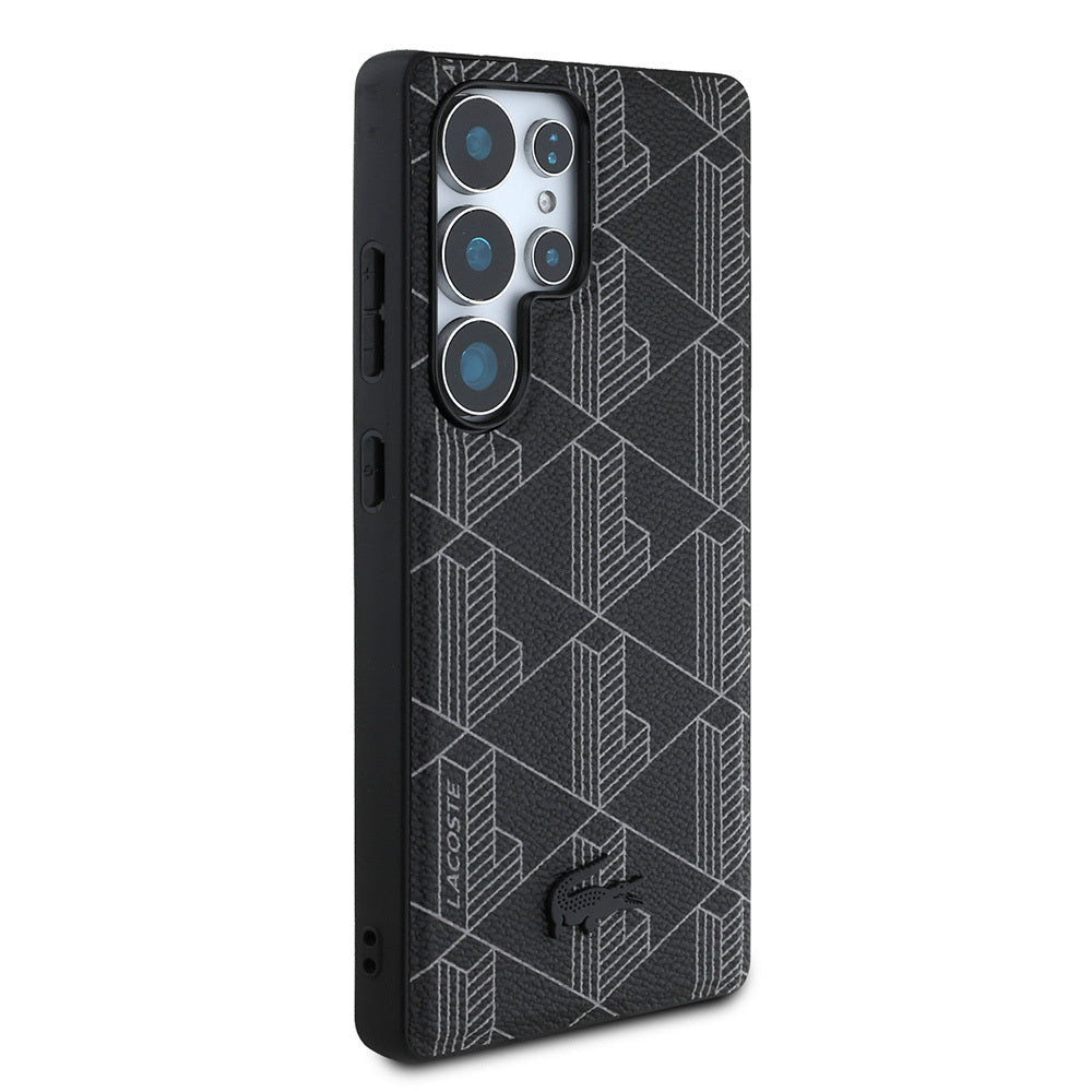 Galaxy S25 Ultra Kılıf Lacoste Orjinal Lisanslı M-safe Şarj Özellikli PU Deri Görünümlü Karışık Monogram Desenli Kapak Siyah