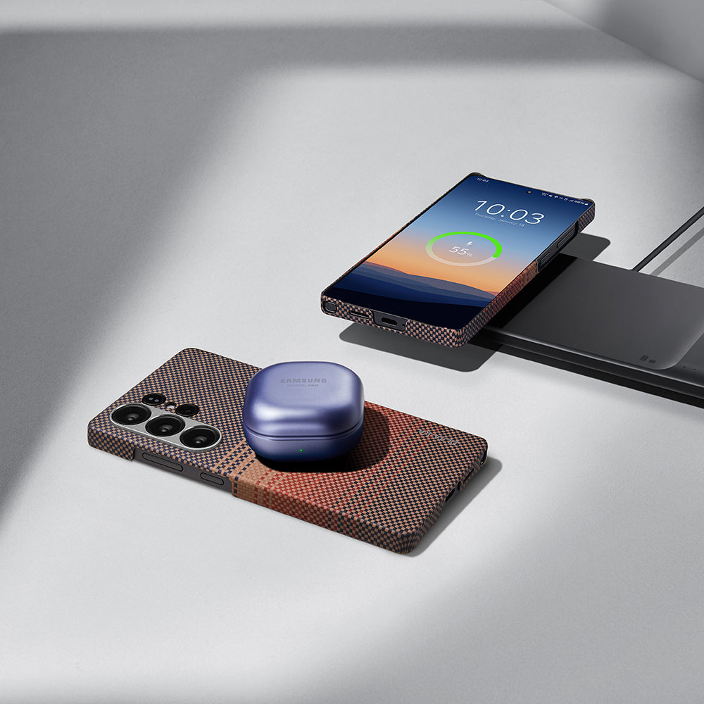 Aerospace sınıfı aramid fiber dokuma yapısı, çizilmelere ve renk solmasına karşı üstün dayanıklılık sunar. Fusion Weaving teknolojisi ile bir araya getirilen Sunset-Moonrise temalı renk tonları, kılıfın estetiğini arttırırken, cildinize dost dokusuyla mükemmel bir tutuş sağlar. Arka kapakta kullanılan alüminyum alaşım kamera çerçevesi de kameranızı koruma altına alır.