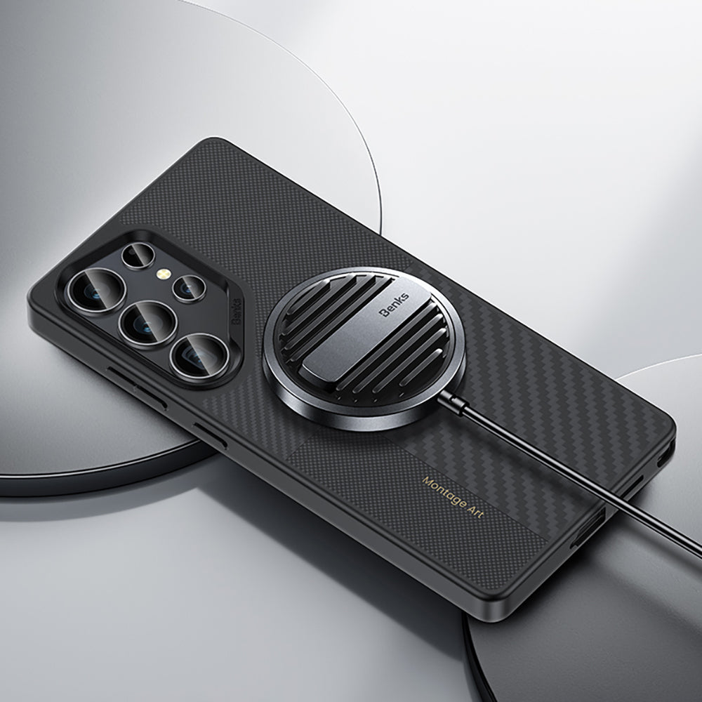 Galaxy S25 Ultra Kılıf Magsafe Şarj Özellikli Karbon Fiber Benks Montage Hybrid ArmorPro Kevlar Kapak
