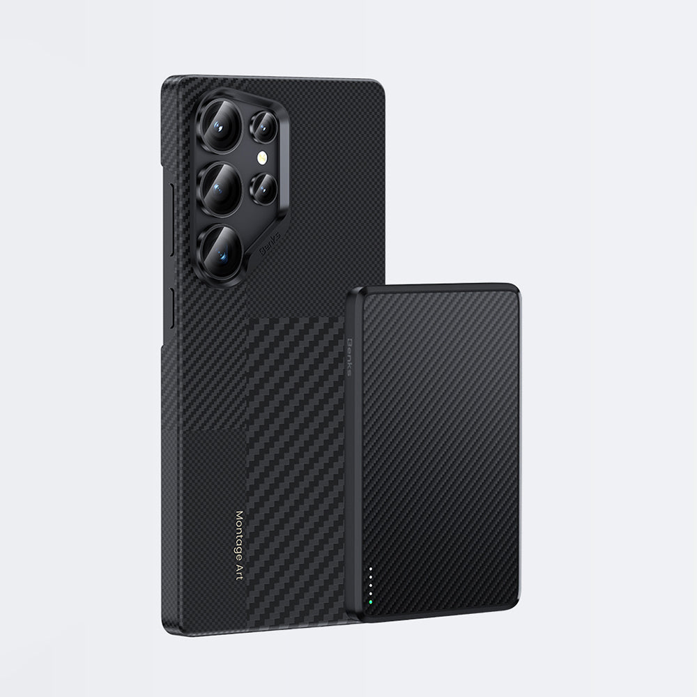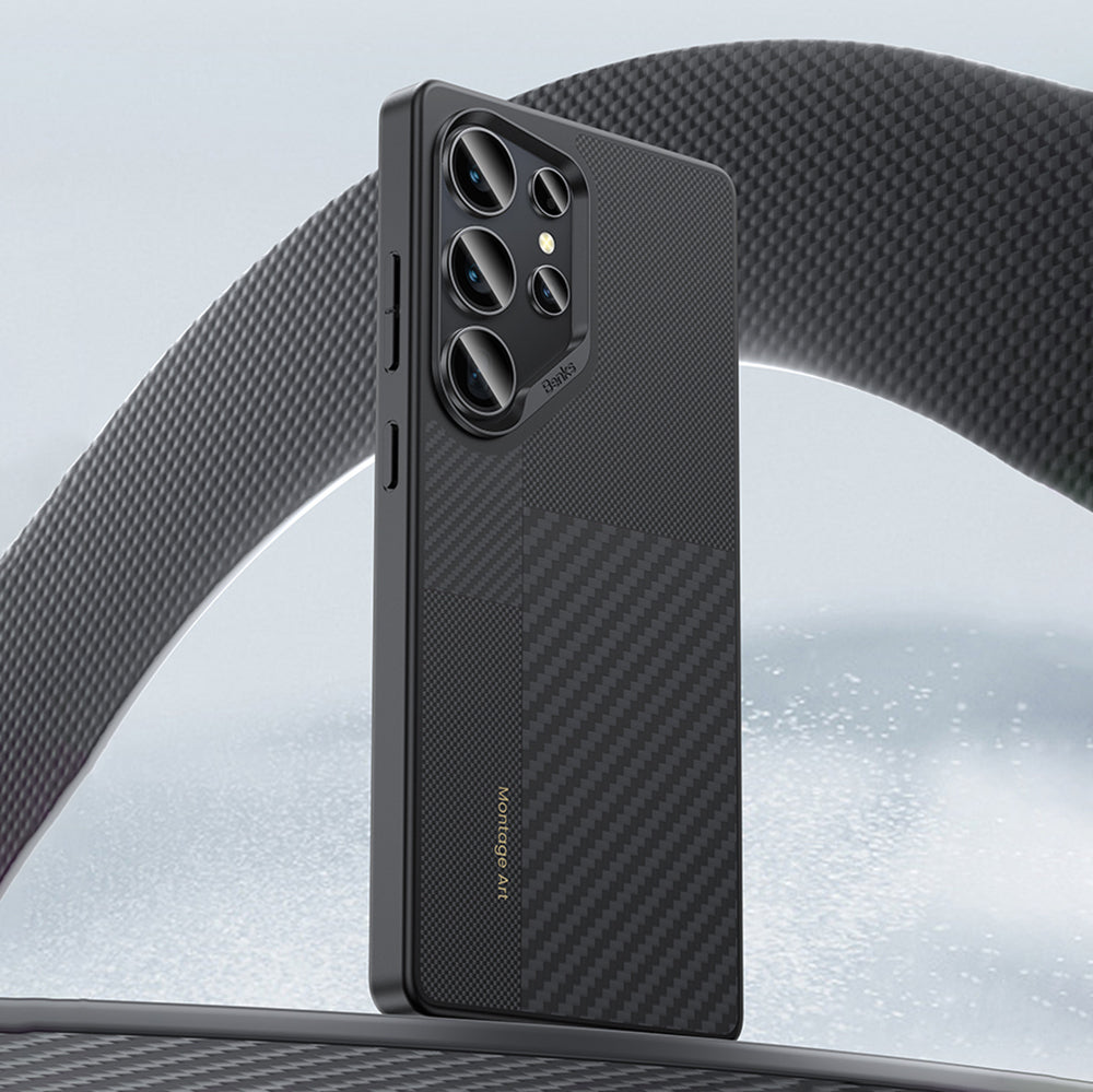 Galaxy S25 Ultra Kılıf M-safe Şarj Özellikli Karbon Fiber Benks Montage Hybrid ArmorPro Kevlar Kapak Siyah