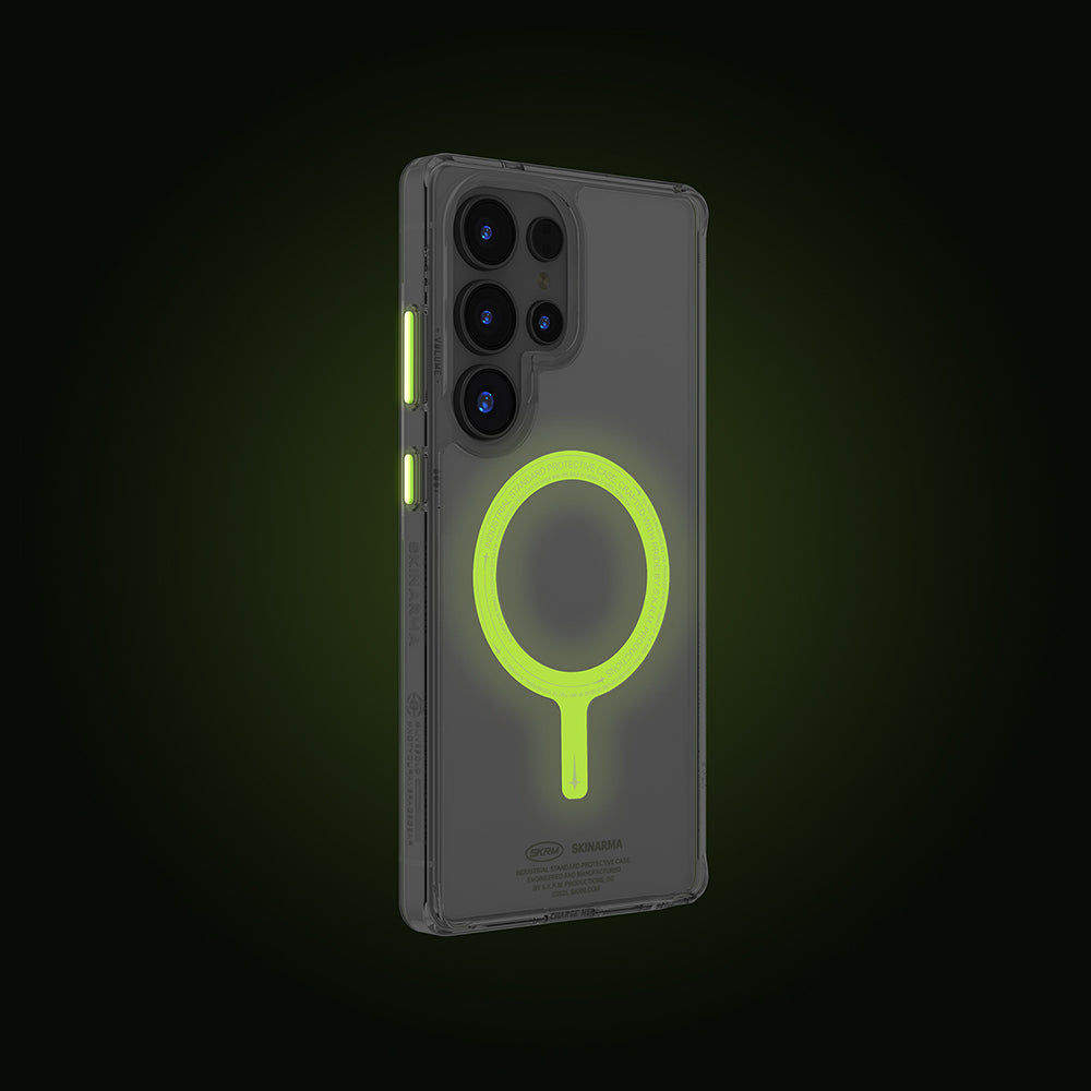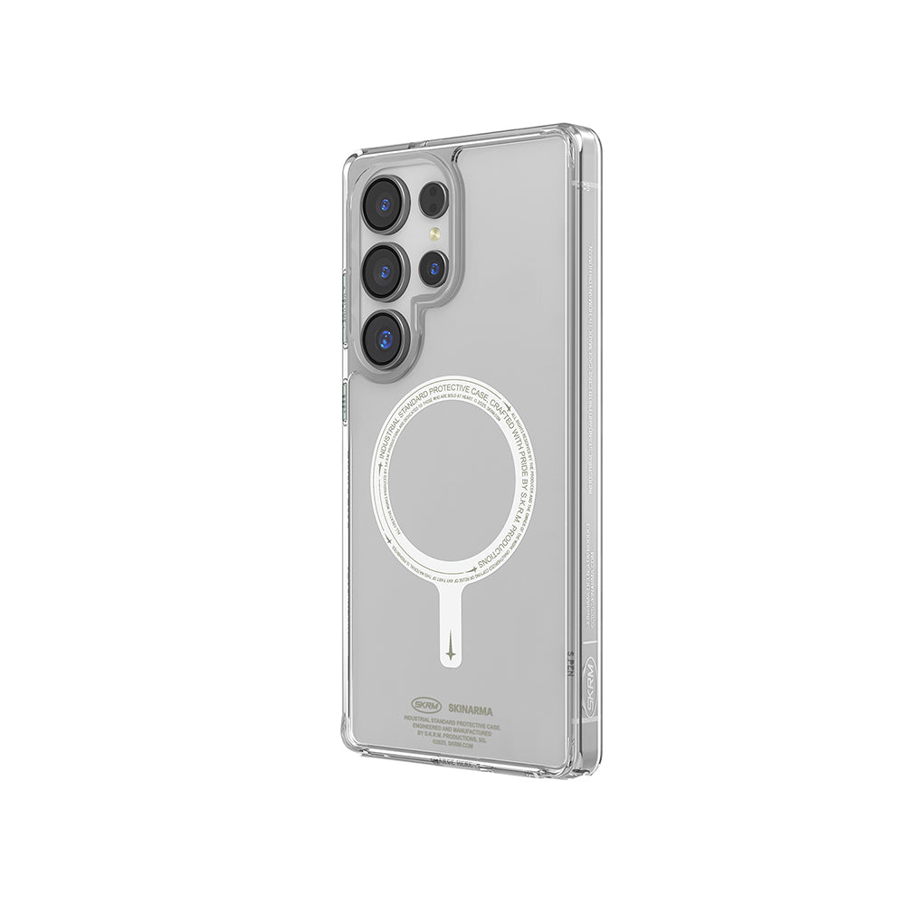 Galaxy S25 Ultra Kılıf M-safe Şarj Özellikli Şeffaf Airbag Tasarımlı Skinarma Saido Nightglow Kapak Şeffaf