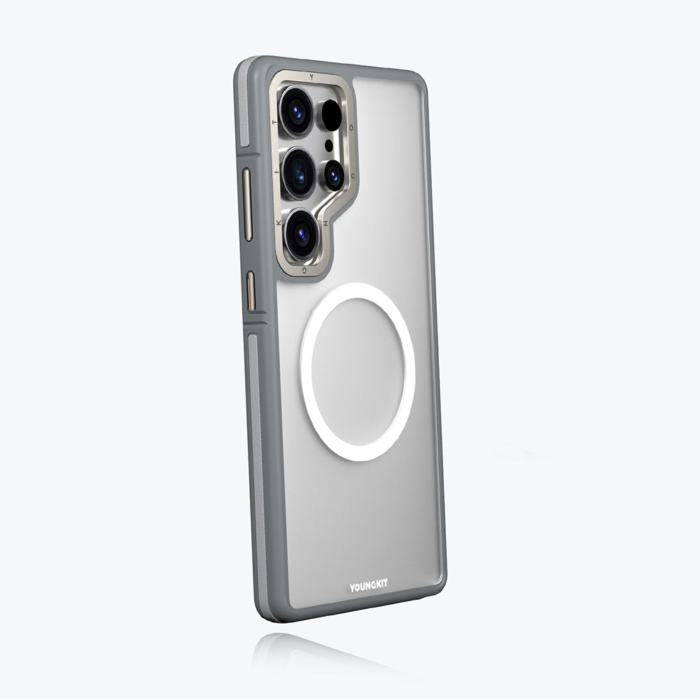Galaxy S25 Ultra Kılıf M-safe Şarj Özellikli Youngkit Rock Sand Serisi Kapak Gri