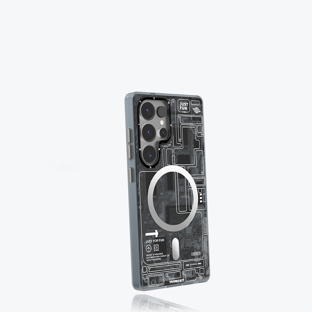 Galaxy S25 Ultra Kılıf M-safe Şarj Özellikli YoungKit Technology Serisi Kapak Siyah