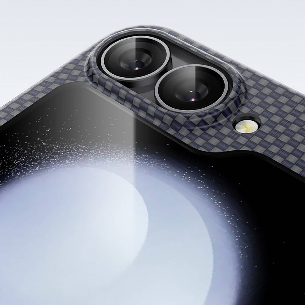 Galaxy Z Flip 6 Kılıf Karbon Fiber Tasarımlı Benks Aurora ArmorAir Kevlar Kapak