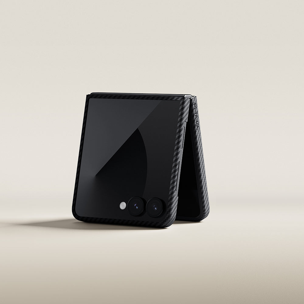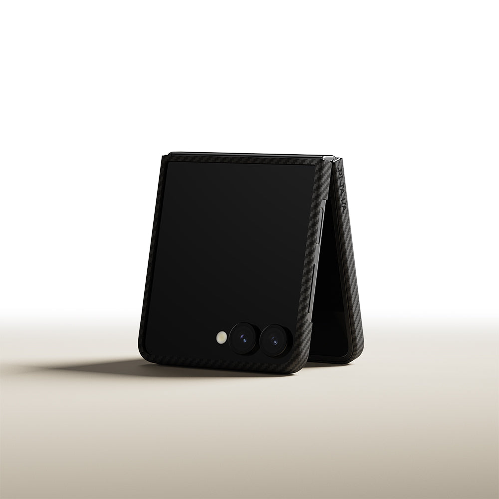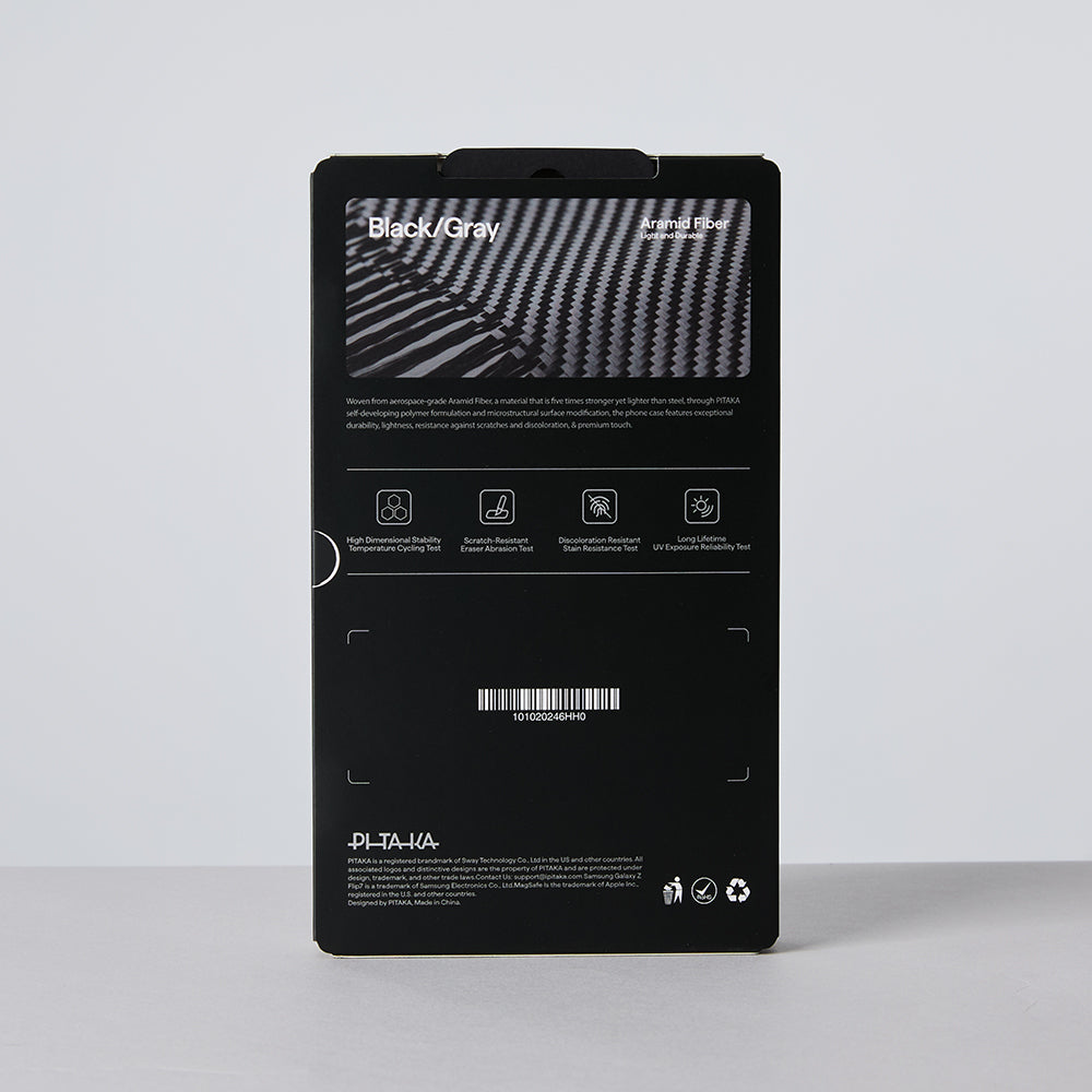 Galaxy Z Flip 7 Kılıf M-safe Şarj Özellikli 600D Aramid Fiber Pitaka Ultra-Slim Classic Serisi Black-Grey Twill Kapak