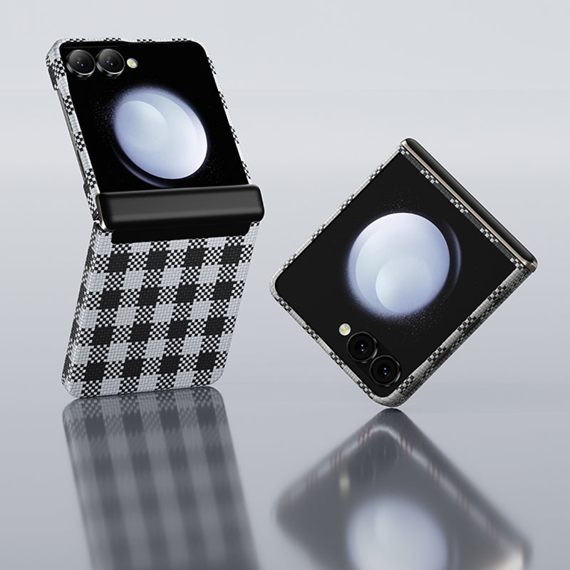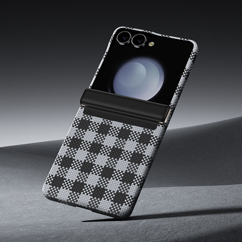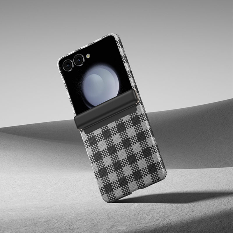 Galaxy Z Flip 7 Kılıf M-safe Şarj Özellikli Ekose Tasarımlı Benks ArmorAir ArmorVichy Kevlar Kapak Siyah
