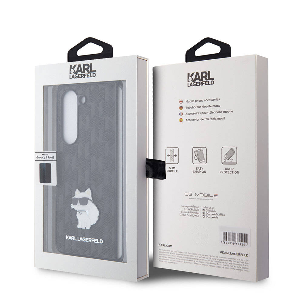 Galaxy Z Fold 5 Kılıf Karl Lagerfeld Orjinal Lisanslı KL Desenli Choupette İkonik Saffiano Kapak Siyah