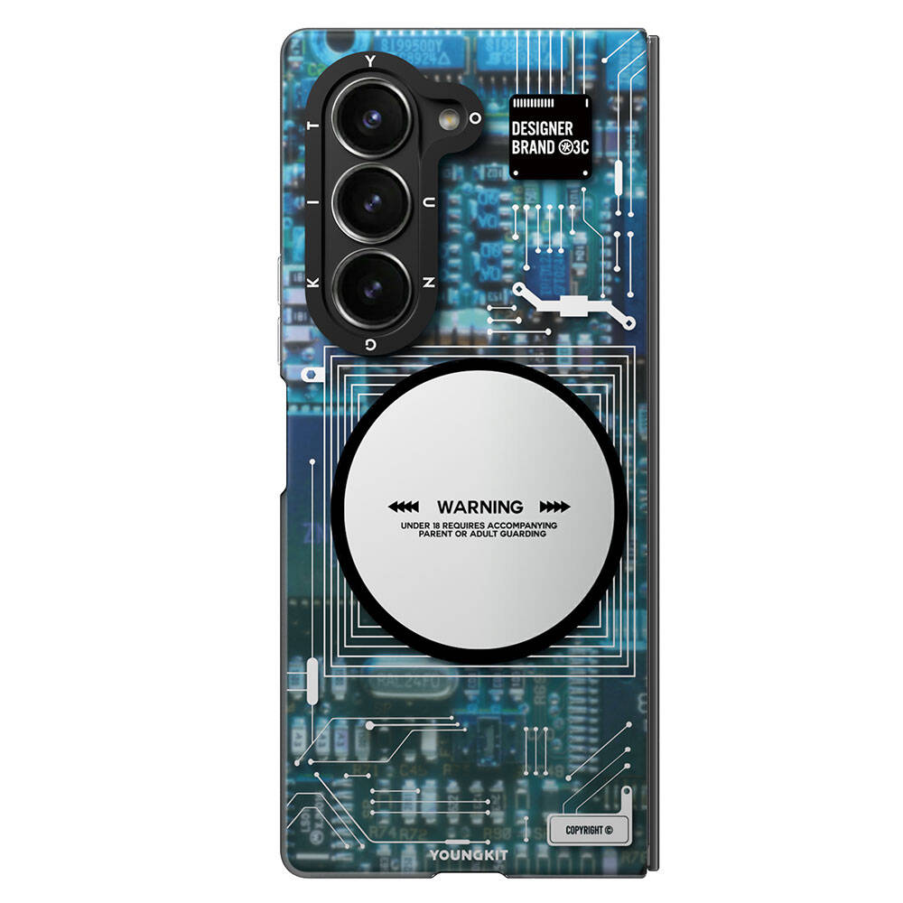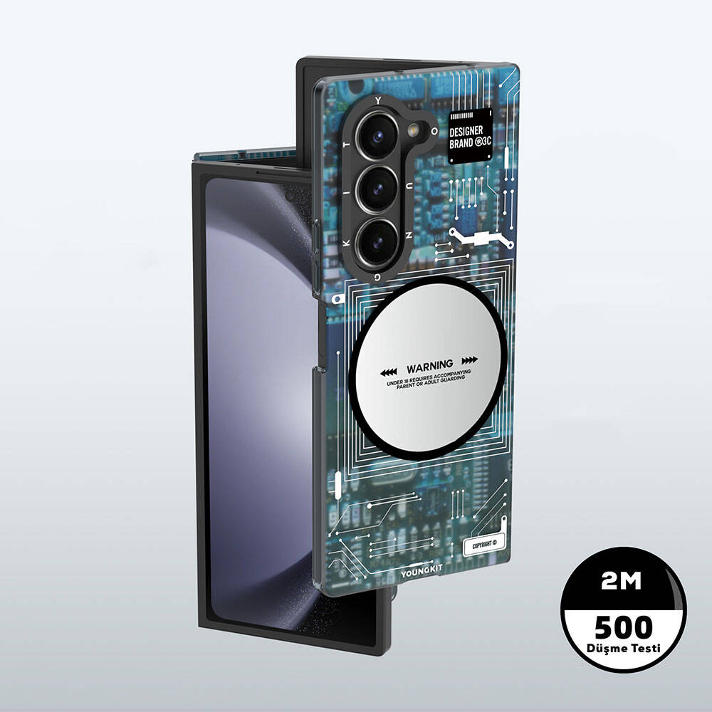 Galaxy Z Fold 6 Kılıf M-safe Şarj Özellikli Youngkit Technology Serisi Kapak Mavi