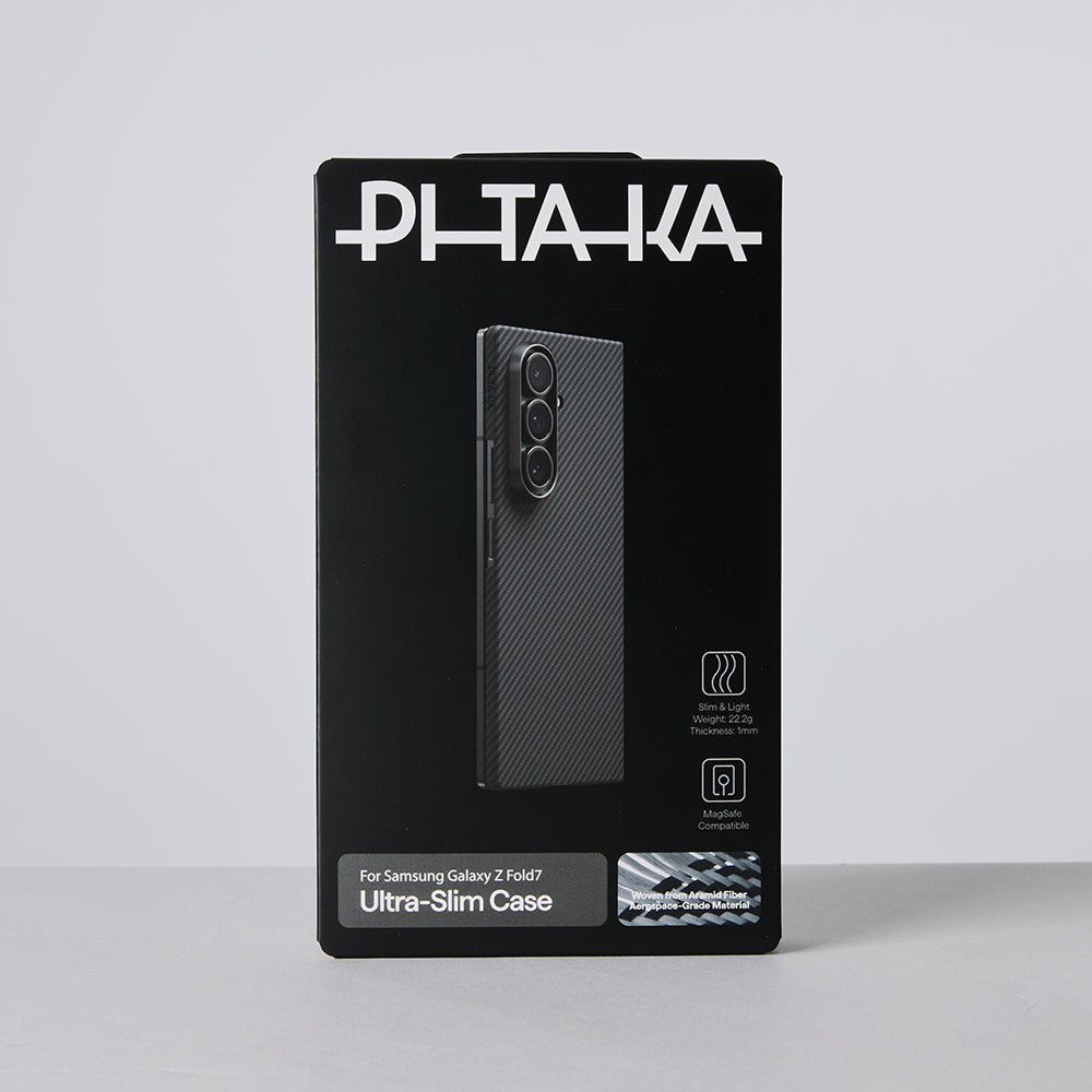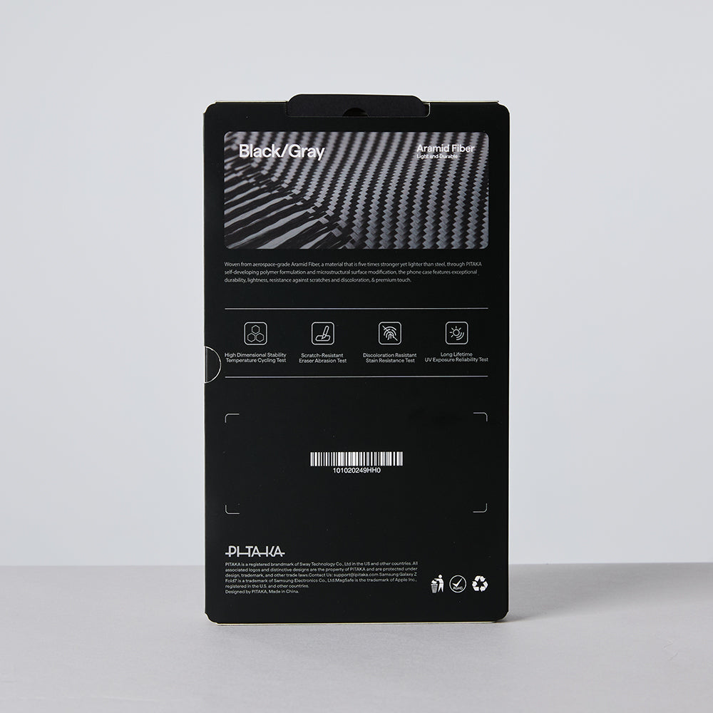 Galaxy Z Fold 7 Kılıf M-safe Şarj Özellikli 600D Aramid Fiber Pitaka Ultra-Slim Classic Serisi Black-Grey Twill Kapak