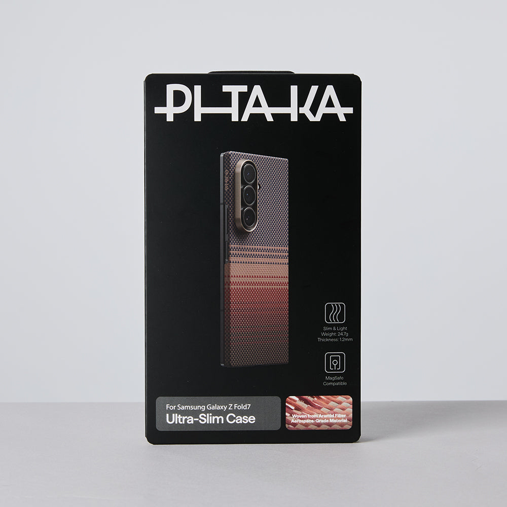 Galaxy Z Fold 7 Kılıf M-safe Şarj Özellikli Aramid Fiber Pitaka Tactile Woven Sunset-Moonrise Serisi Kapak