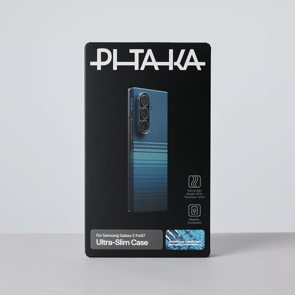 Galaxy Z Fold 7 Kılıf M-safe Şarj Özellikli Aramid Fiber Pitaka Tactile Woven Sunset-Moonrise Serisi Kapak Mavi