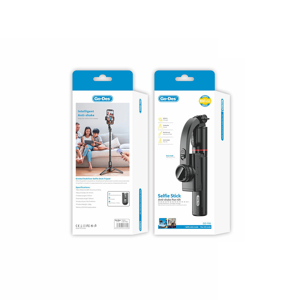 Go-Des GD-F06 Bluetooth Kumandalı Teleskopik Tripodlu Sarsılma Engelleyicili Selfie Çubuğu