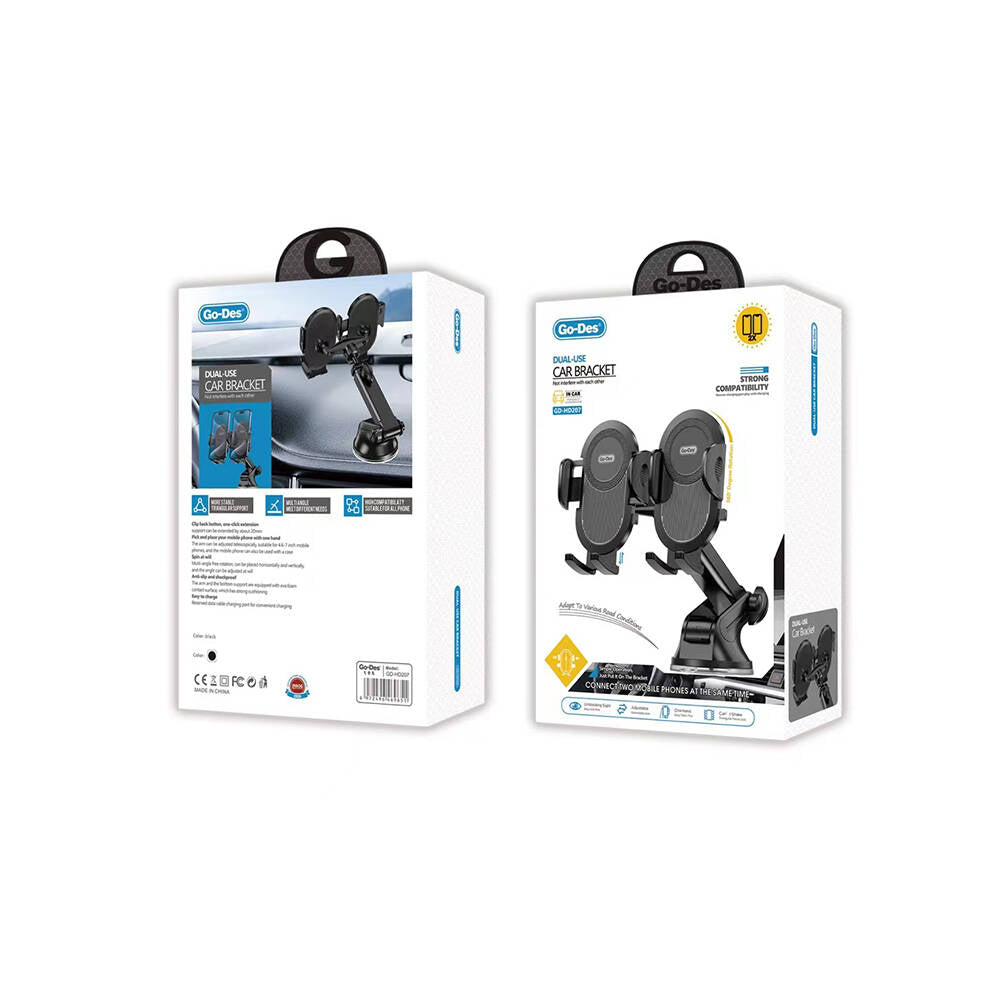Go Des GD-HD207 Çift Kullanım Vantuzlu Tasarım İkili Araç Telefon Tutucu