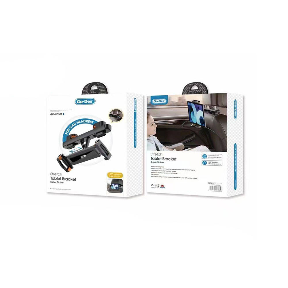 Go Des GD-HD301 Otomatik Mekanizmalı Arka Koltuk Araç Tablet Tutucu Siyah