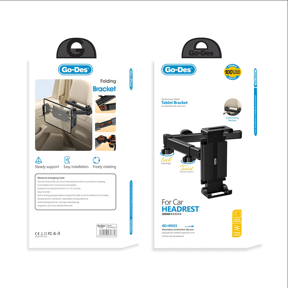 Yüksek kaliteli malzemelerden üretilen Go Des GD-HD323, birçok farklı araç modeline uyum sağlar. Geniş cihaz desteği sayesinde hem tablet hem de telefonlarla uyumlu olarak kullanılabilir. Kompakt tasarımı, araç içerisinde şık ve minimal bir görünüm sunar.