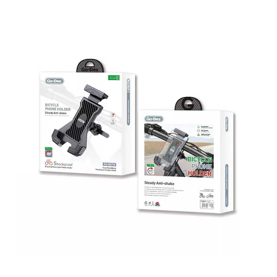 Go Des GD-HD715 Sarsıntı Önleyici 360 Derece Ayarlanabilir Bisiklet ve Motosiklet Telefon Tutucu Siyah