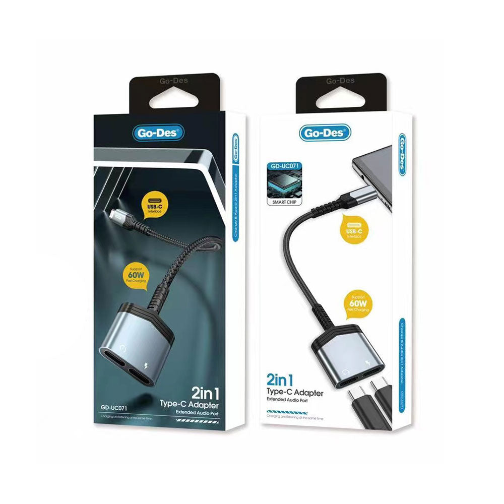 Go-Des GD-UC071 Type-C 2in1 Şarj ve Ses Adaptörü